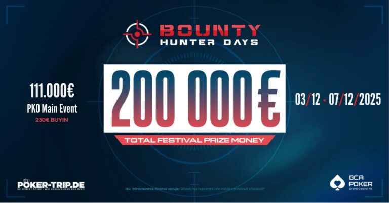 Noch ein fünftes Mal kommt poker-trip.de mit den Bounty Hunter Days dieses Jahr ins GCA. Das letzte Event hat wieder ein € 140 + 60 + 30 PKO Main Event – und jede Menge Side Events. Inklusive Mayomans High Roller, Welfenpoker und natürlich Barista Rebel Cup.