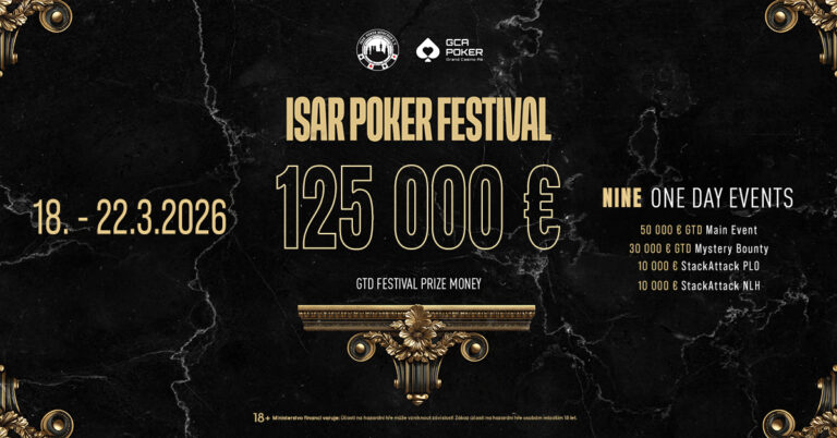 Isar Poker  schauen weder mal im GCA vorbei und feiern das Isar Poker Festival. Das € 130 + 20 Main Event kommt mit €50.000 GTD, dazu gibt es wieder einige Side Events.