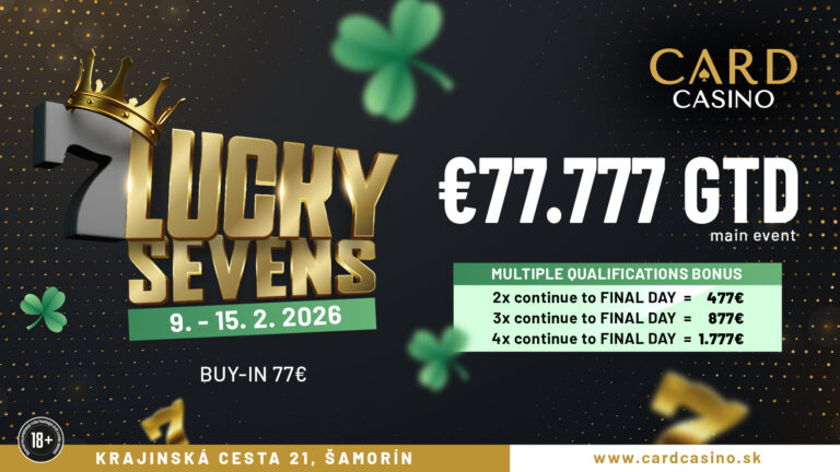 Gleich im Anschluss an die Card Poker Series lädt das Card Casino zu einer neuen Ausgabe des € 77 Lucky Sevens. Natürlich wieder mit € 77.777 GTD.