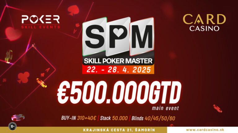 Das nächste große Festival im Card Casino Samorin. Beim € 310 + 40 Main Event der Skill Poker Masters warten € 500.000 Preisgeld, dazu kommen einige Side Events.